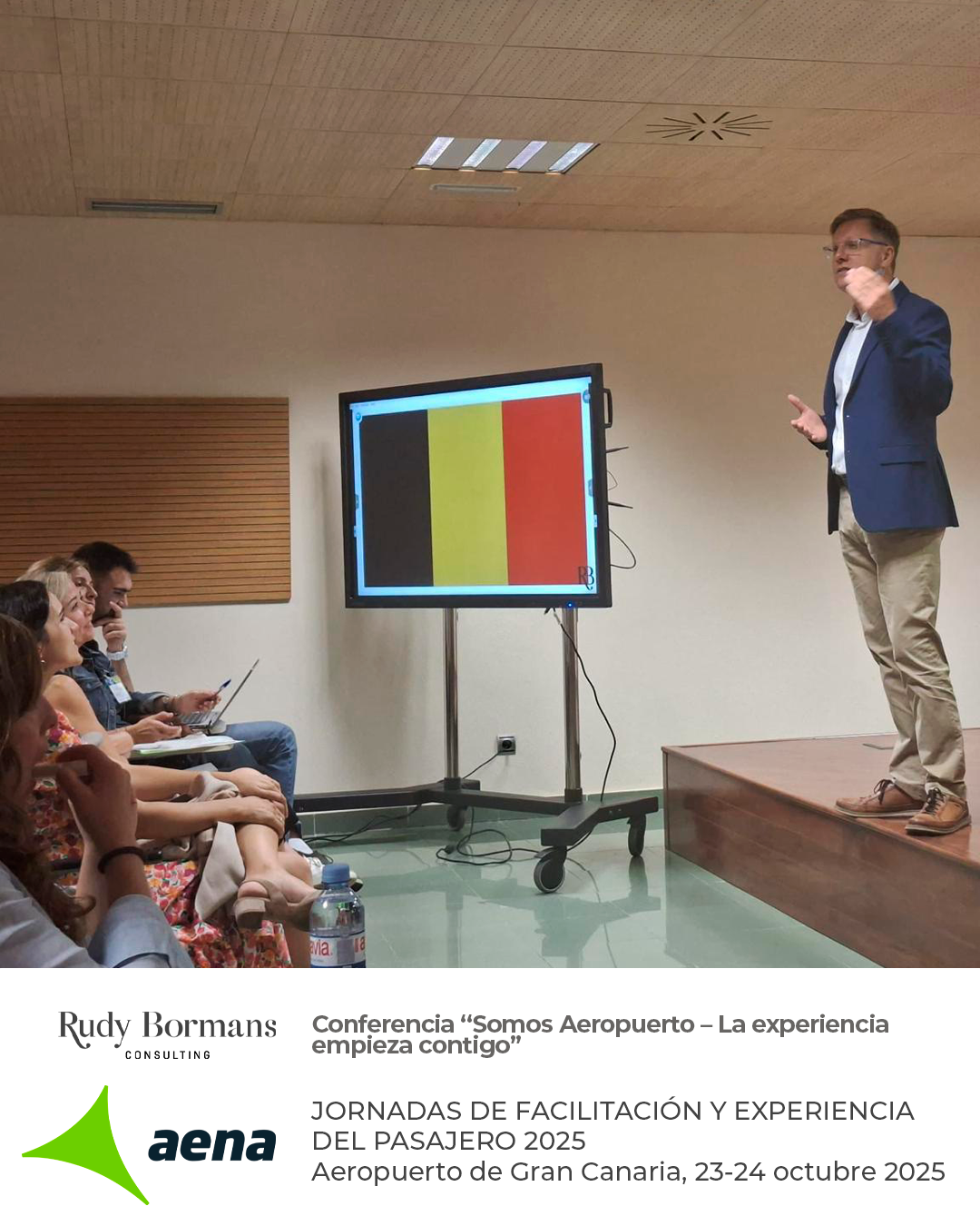 Si deseas conocer más información sobre las conferencias y programas de formación empresarial que impartimos en Rudy Bormans consulting, centrados en liderazgo, gestión de equipos y desarrollo personal para directivos y organizaciones, puedes visitar el apartado en la web aquí o contactar con nosotros para diseñar una experiencia formativa adaptada a las necesidades de tu evento.